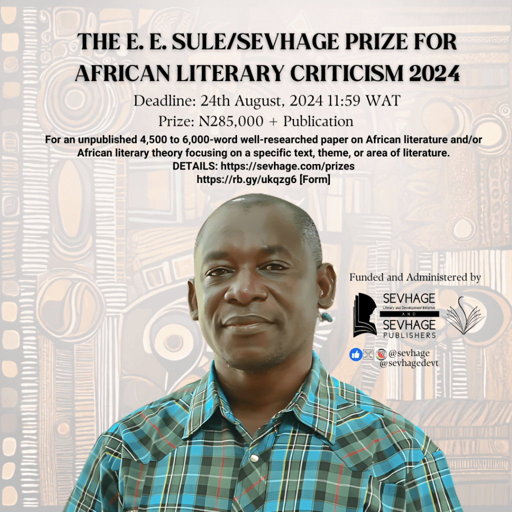 In celebrating and making more visible the culture of criticism, SEVHAGE will award the E. E. SULE/SEVHAGE Prize for African Literary Criticism for an outstanding well-researched work of literary criticism or critical appraisal in form of the essay. This prize is in honour of Nigeria’s prominent scholar and literary critic, Prof. Sule Emmanuel Egya (aka E. E. Sule), an outstanding writer, whose lifelong works in criticism are visionary and inspiring.