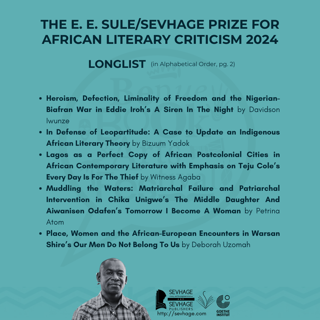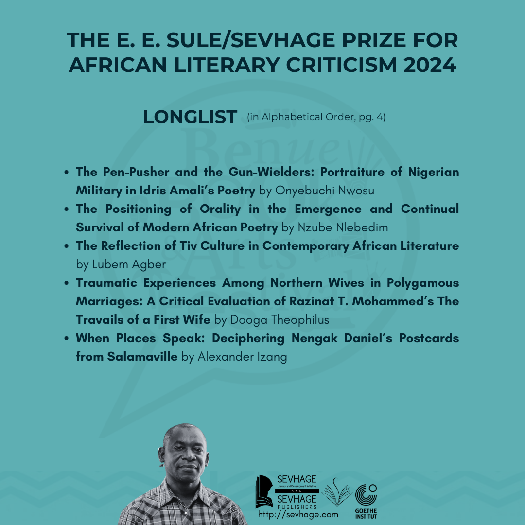 Longlist for the E. E. Sule/SEVHAGE Prize for African Literary Criticism 2024