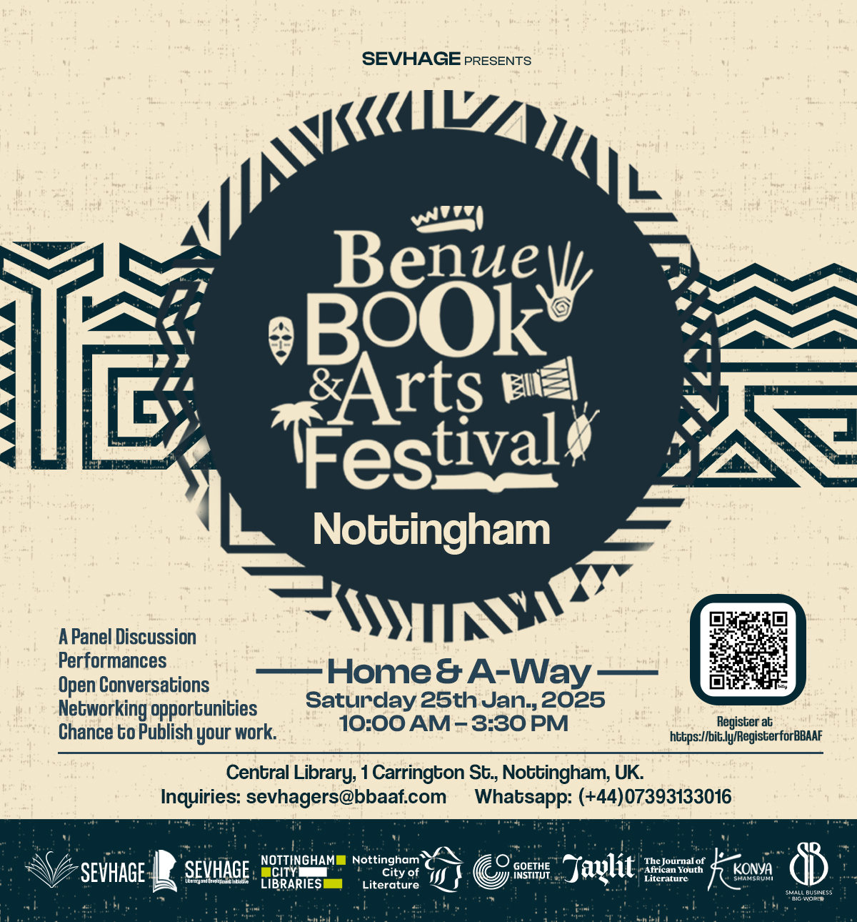 The Benue Book & Arts Festival (BBAAF) is making its highly anticipated debut in Nottingham on Saturday, 25th January 2025. Organised by the SEVHAGE Literary and Development Initiative and SEVHAGE Publishers, this inaugural event will take place at the Central Library in Nottingham from 10:00 AM to 3:30 PM. The festival promises a full day of stimulating discussions, vibrant performances, and valuable networking opportunities, all aimed at creating a platform for cultural exchange and celebrating the power of literature, art, and storytelling.