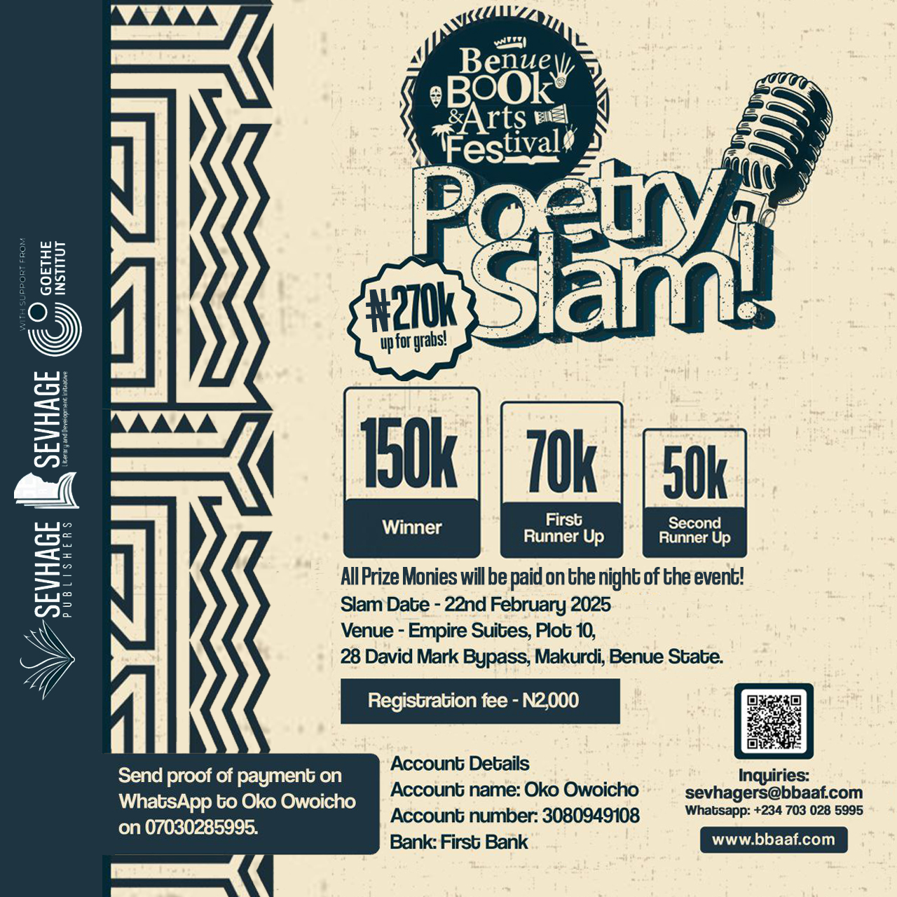 The poetry slam competition was part of the Benue Book and Arts Festival (Edition V) in collaboration with SEVHAGE Publishers, SEVHAGE Development Initiative, Eunice Spring of Life Foundation, Goethe-Institut, the Journal of African Literature (JAY-LIT), Konya Shamsrumi, Noirledge, Association of Nigeria Authors, Benue chapter and other well-meaning organizations. efforts to promote literacy, self-expression, and community engagement and sustainable development through the arts.