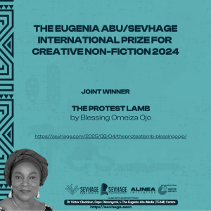 In partnership with Alinea Initiative, Goethe Institut Nigeria, African & Black Creatives for Development, and SELDI, SEVHAGE presents the winners of the Eugenia Abu/SEVHAGE International Prize for Creative Non-Fiction 2024. Blessing Omeiza Ojo’s piece is the joint-winning entry.